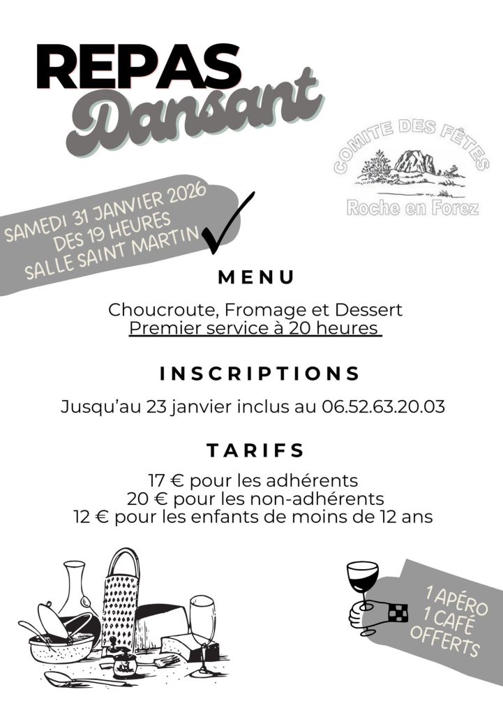 Repas dansant du comité des fêtes de Roche-en-Forez le 31/01/2026